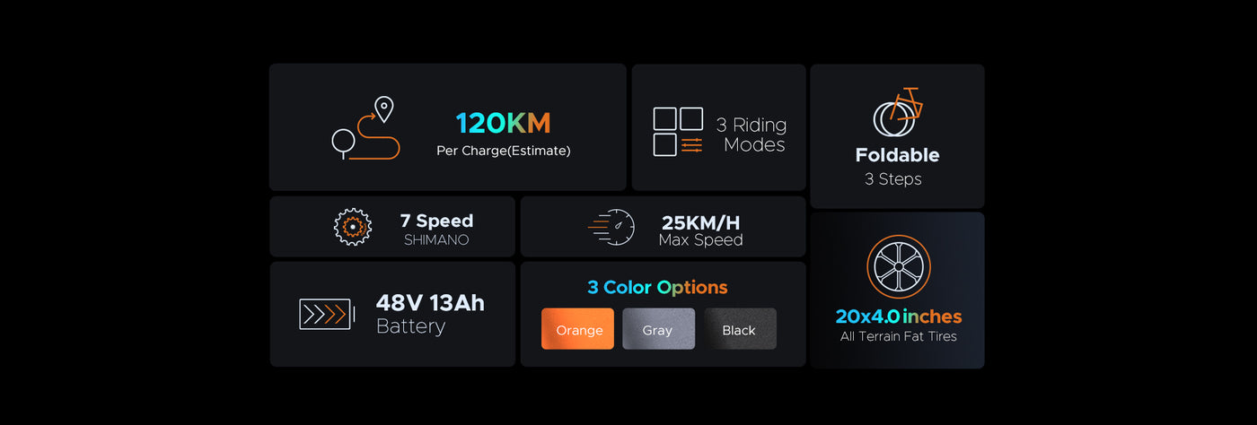 120 km Range Max Speed 25 km/h Front Suspension Foldable E-bike